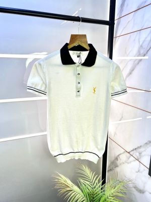 Ysl White Knitted Polo Premium Collar Neck T-shirt F3131-WH